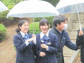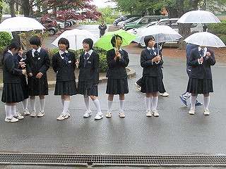 先週の金曜日の「3年生のショート集会」で、学年生徒会が「挨拶運動を行いますので、たくさんのボランティアを募ります」と呼びかけをしました。今朝は雨が降っていましたが、たくさんの3年生が生徒昇降口前で挨拶運動に取り組んでくれました。