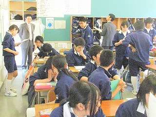 6月3日(木)の午後、「盛岡市教育委員会」の先生方15名が北陵中学校の授業を参観に来ました。この日は暑い日でしたので、午後の授業をきちんとできるかどうか不安でした。私も写真撮影をしながら授業を見て歩きましたが、「いつも通りの授業?」