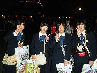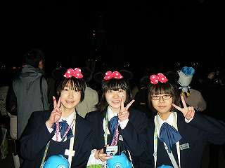 「東京ディズニーランド」は、肌寒い気温でしたが、岩手っ子は元気でした。午前中の雨も上がり、風もなく、さらにお客さんも少なく、絶好のエンジョイ日和でした。生徒たちは元気に、9時30分まで動き回りました。少し疲れて体調を崩した生徒も一人いましたが、みんな元気に「夢の国」を満喫しました。