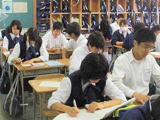 ※3学年第2回学習コンクール(理科)に向けて、練習に取り組む3年生の様子です。