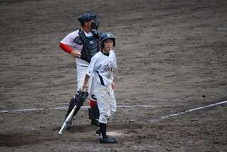 試合は1回表の城西中の4番バッターにレフトオーバーの飛球を打たれ1点先行されました。その回の裏、先頭バッターの民部田くんのツーベースヒットでノーアウト2塁のチャンスでしたが、得点はできませんでした。その後はピッチャーの松平くんが踏ん張り、お互いに得点できず。