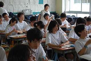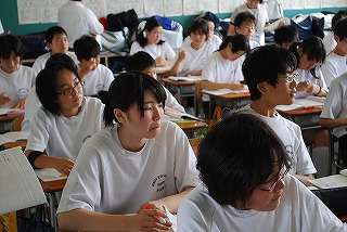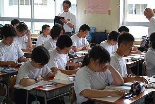 7月6日(火)の校時、2年組で数学の授業研が行われました。授業者は鈴木先生でした。授業の内容は「1次関数」の導入部分でした。積極的に発言する2年生の生徒たちに授業の成功を感じました。暑い中でしたが、「真剣」に授業に向かう姿に感激していました。