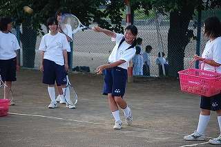 7月6日(火)久々にカメラを持って子どもたちの活動する部活動の様子を撮影に出かけました。自分の部活動を少し削って、校舎内や校庭を歩き回りました。とても暑い中県大会へ向けて練習中の「女子ソフトテニス部」でした。1,2年生ばかりで、カメラを向けると「恥ずかし〜」と言われてしまいました。「ナイス!」の声が響いていました。