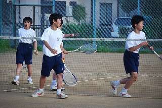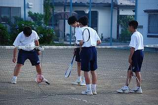 7月6日(火)久々にカメラを持って子どもたちの活動する部活動の様子を撮影に出かけました。自分の部活動を少し削って、校舎内や校庭を歩き回りました。とても暑い中県大会へ向けて練習中の「男子ソフトテニス部」でした。1,2年生ばかりで、カメラを向けると「撮ってちょうだ〜い」と言われてしまいました。「ナイス!」の声が響いていました。