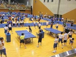 7月11日(日)花巻市総合体育館で「岩手県卓球協会長杯学年別卓球大会」に13名参加してきました。3年生2名、2年生8名、1年生3名が出場してきました。このうち、菅原くん、井上くん、加賀くん、加藤くんの4名が予選を通過し決勝トーナメントへ出場しました。1年生の加藤くんが予選を通過したのには「驚き」ました。残念ながら、そのトーナメントの1回戦で敗退し、ベスト32止まりでした。昨年度も出場しましたが、ずいぶん進歩してきています。市中総体でも2年生主力で試合をしてきたおかげです。1年生に負けないようにしっかりと練習をしましょう。