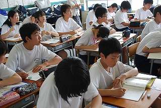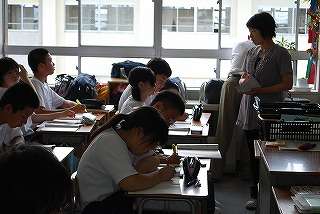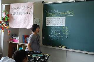 7月6日(火)の校時、2年組で数学の授業研が行われました。授業者は鈴木先生でした。授業の内容は「1次関数」の導入部分でした。積極的に発言する2年生の生徒たちに授業の成功を感じました。暑い中でしたが、「真剣」に授業に向かう姿に感激していました。