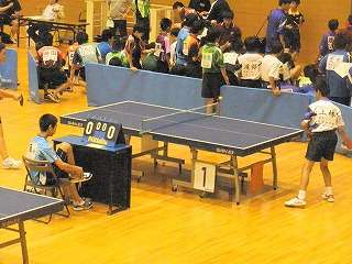 7月11日(日)花巻市総合体育館で「岩手県卓球協会長杯学年別卓球大会」に13名参加してきました。3年生2名、2年生8名、1年生3名が出場してきました。このうち、菅原くん、井上くん、加賀くん、加藤くんの4名が予選を通過し決勝トーナメントへ出場しました。1年生の加藤くんが予選を通過したのには「驚き」ました。残念ながら、そのトーナメントの1回戦で敗退し、ベスト32止まりでした。昨年度も出場しましたが、ずいぶん進歩してきています。市中総体でも2年生主力で試合をしてきたおかげです。1年生に負けないようにしっかりと練習をしましょう。