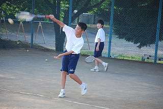 7月6日(火)久々にカメラを持って子どもたちの活動する部活動の様子を撮影に出かけました。自分の部活動を少し削って、校舎内や校庭を歩き回りました。とても暑い中県大会へ向けて練習中の「男子ソフトテニス部」でした。1,2年生ばかりで、カメラを向けると「撮ってちょうだ〜い」と言われてしまいました。「ナイス!」の声が響いていました。
