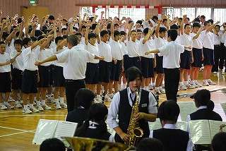 また、8月7日(土)には「岩手県吹奏楽コンクール」が行われます。県中総体の激励会と共に、吹奏楽部の激励をしました。吹奏楽部からは、県大会での「課題曲」と「自由曲」の2曲が全校生徒の前で、披露されました。運動部も吹奏楽部も頑張ります。応援よろしくお願いします。