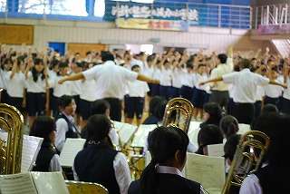 また、8月7日(土)には「岩手県吹奏楽コンクール」が行われます。県中総体の激励会と共に、吹奏楽部の激励をしました。吹奏楽部からは、県大会での「課題曲」と「自由曲」の2曲が全校生徒の前で、披露されました。運動部も吹奏楽部も頑張ります。応援よろしくお願いします。