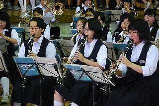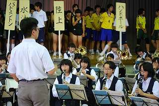 また、8月7日(土)には「岩手県吹奏楽コンクール」が行われます。県中総体の激励会と共に、吹奏楽部の激励をしました。吹奏楽部からは、県大会での「課題曲」と「自由曲」の2曲が全校生徒の前で、披露されました。運動部も吹奏楽部も頑張ります。応援よろしくお願いします。