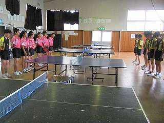 7月10日(土)厨川中学校の卓球場で厨川中学校と今年5回目の練習試合を行いました。厨川中学校とは、毎月練習試合を行い、市新人大会の決勝戦から始まり、市民体の決勝、市中総体の決勝といつも戦ってきた相手校です。今回がこのメンバーで戦う最後の練習試合となりました。毎月練習試合をお願いして自分たちの力を確かめさせてもらっています。今回は、レギュラー全員が揃い県中総体前の最後の練習試合することができました。3回団体戦を行い、1回目1—4,2回目3−2でした。目指すは、県中総体ベスト8が目標です。