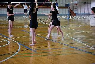 ※8月4日(水)新体操部の活動の様子です。少ない人数で、新種目「ロープ」の練習中でした。なかなか絡み合って大変なそうです。