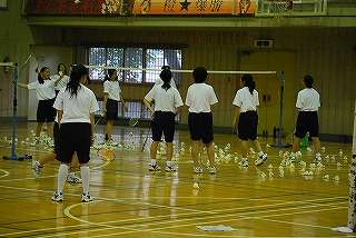 ※7月30日(金)女子バドミントン部の活動の様子です。水分や塩分をしっかり取り、たくさん汗を流して「この夏休みに技術や精神を鍛えてほしい」と思います。男子卓球部で部活動中に突然具合が悪くなった生徒がいます。体を冷やしてもなかなかよくなりませんでした。病院で点滴を受けたら、よくなりました。「熱中症」だったと思います。こまめに水分を取って練習をしましょう。「熱中症」かな?と思ったら病院で受診した方が治りが早いようです。
