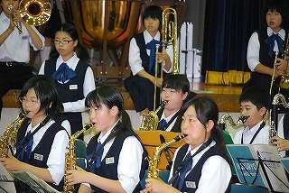 ※写真は6月28日、地区大会へ向けて朝練習に取り組む吹奏楽部の様子です。