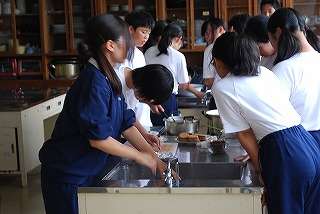7月26日(月)の午前中、調理室で美術家庭部が「夏休みパーティー」を企画しました。チョコレートを溶かし「お菓子作り」に挑戦していました。たくさんの人数がいることに驚きました。調理室から「甘〜い匂い」がしてきました。