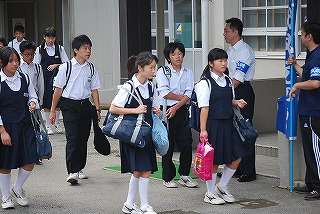 恒例の「おやじの会」による「挨拶運動」、2学期スタートです☆まだまだ暑い日が続いています!(その1)