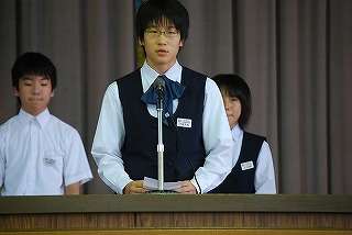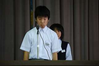 ※8月18日(水)の2学期始業式の様子です。2学期の決意を発表する3学年と生徒会執行部の生徒です。