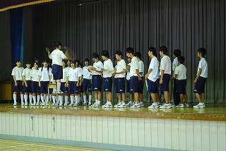 9月3日(金)の1校時、体育館のステージを使って「3年生の学級合唱交流会」が行われました。北陵祭の合唱コンクールに向けて、学級合唱の進行状況を確認し合いました。まだまだ練習を始めたばかりですので、これからの練習の仕方が大事です。