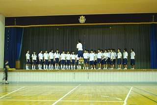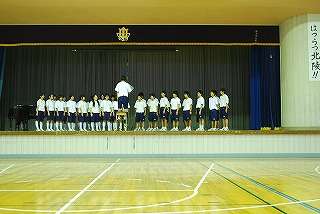 9月3日(金)の1校時、体育館のステージを使って「3年生の学級合唱交流会」が行われました。北陵祭の合唱コンクールに向けて、学級合唱の進行状況を確認し合いました。まだまだ練習を始めたばかりですので、これからの練習の仕方が大事です。