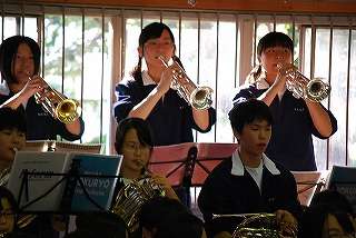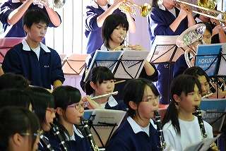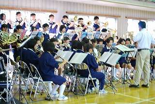 ※新人戦の激励会で演奏する吹奏楽部の様子です。