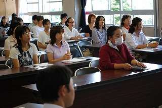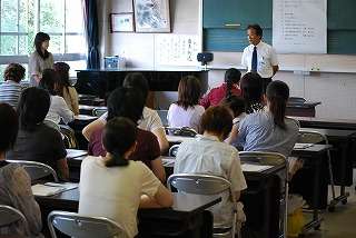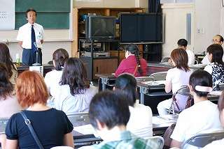 9月10日(金)の午後、不来方高校、盛岡商業高校、盛岡中央高校の先生をお呼びして、PTA主催の「進路学習会」が行われました。参加したお母さん方は熱心に話を聞いていました。
