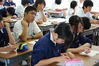 ※9月10日(金)第3回全校学習コンクールの問題に向かう3年生です。