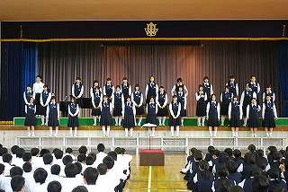 9月24日(金)の全校朝会で、これから山形県で行われる「全日本合唱コンクール東北支部大会」へ出発する「合唱部」が東北大会で発表する曲を全校生徒へ聞かせてくれました。岩手県代表として、頑張ってきてくださいね。久しぶりに合唱を聞きましたが、人数も多くなり、美しく迫力ある合唱を聞くことができました。頑張っていい発表をしてきて下さい。