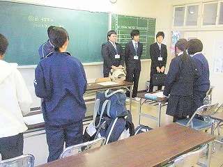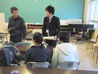 11月に入り、要望していた「大学生による放課後学習支援」活動が始まりました。11月2日(火)には、4人の岩手大学と盛岡大学の学生さんに来ていただき生徒の指導をしていただきました。3人は国語の放課後学習の指導、1人はソフトテニスの部活動指導です。この日の放課後学習は、国語でした。生徒4人に対して、学生さんが3人と指導する先生1人の合計4人でしたので、な!な!なんと「国語のマンツーマン指導」をしていただきました。このスクールトライアルの事業は毎日行われ、たくさんの学生さんに来ていただき、指導をしていただきます。