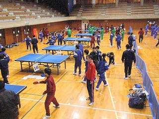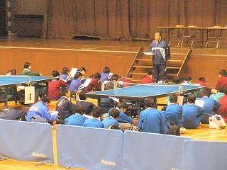 11月6日(土)、水沢市体育館で行われた「胆江地区県大会出場校との練習会」に北陵中学校の男女卓球部が招待され、参加してきました。男子の団体戦の主戦メンバー1人が負傷し、参加できませんでした。来週の「県中新人大会」には、万全の体調でのぞめるようですが。男子団体戦で、上野中(北上地区第1代表)に5−0,水沢南中に3−2、衣川中に5−0でした。遅くなったのですが、水沢高校の女子が会場に来ていましたので無理を言って試合をさせてもらいました。3シングルス1ダブルスで団体戦をしましたが、1−3で敗退しました。やはり女子と言っても「高校の県新人大会ベスト4」の学校ですので、歯が立ちませんでした。午前中は、「県中新人大会の個人戦」出場者でのリーグ戦を行い、たくさん試合をさせてもらいました。北陵中男子卓球部の目標は「県中新人大会ベスト4」です。奥州卓球協会の方々に感謝します。ありがとうございました。