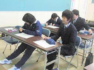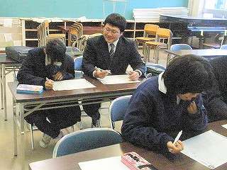 11月に入り、要望していた「大学生による放課後学習支援」活動が始まりました。11月2日(火)には、4人の岩手大学と盛岡大学の学生さんに来ていただき生徒の指導をしていただきました。3人は国語の放課後学習の指導、1人はソフトテニスの部活動指導です。この日の放課後学習は、国語でした。生徒4人に対して、学生さんが3人と指導する先生1人の合計4人でしたので、な!な!なんと「国語のマンツーマン指導」をしていただきました。このスクールトライアルの事業は毎日行われ、たくさんの学生さんに来ていただき、指導をしていただきます。
