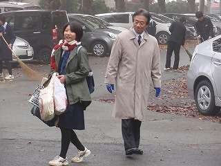 10月から盛岡市教育委員会の事業である「盛岡—インディアナ州交流派遣研修」で、アメリカで研修をつんできた菊地さんが11月5日(金)に帰国し、8日(月)元気に登校してきました。校長先生に朝報告をし、さらに職員室に来て先生方に帰国の挨拶をしました。!