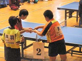 11月6日(土)、水沢市体育館で行われた「胆江地区県大会出場校との練習会」に北陵中学校の男女卓球部が招待され、参加してきました。男子の団体戦の主戦メンバー1人が負傷し、参加できませんでした。来週の「県中新人大会」には、万全の体調でのぞめるようですが。男子団体戦で、上野中(北上地区第1代表)に5−0,水沢南中に3−2、衣川中に5−0でした。遅くなったのですが、水沢高校の女子が会場に来ていましたので無理を言って試合をさせてもらいました。3シングルス1ダブルスで団体戦をしましたが、1−3で敗退しました。やはり女子と言っても「高校の県新人大会ベスト4」の学校ですので、歯が立ちませんでした。午前中は、「県中新人大会の個人戦」出場者でのリーグ戦を行い、たくさん試合をさせてもらいました。北陵中男子卓球部の目標は「県中新人大会ベスト4」です。奥州卓球協会の方々に感謝します。ありがとうございました。