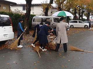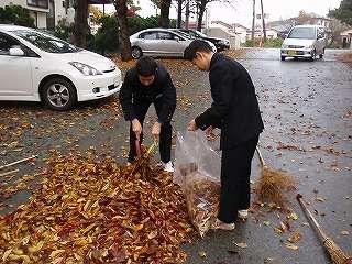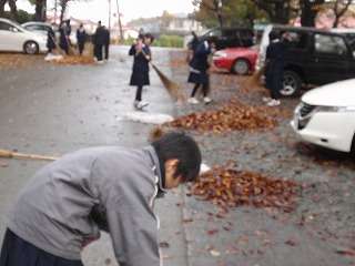 今日の朝のトレーニングは「落ち葉集め」☆3年2組の『落ち葉ボランティア』と一緒に活動(その4)