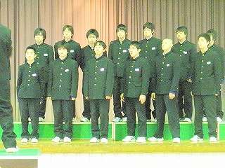 2日(火)の全校朝会で、北陵中学校を代表して連合音楽会に出場する「3年4組」の壮行合唱が披露されました。3年4組には県民会館で大きな声で合唱してきて欲しいと思います。頑張れ!3年4組