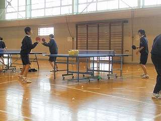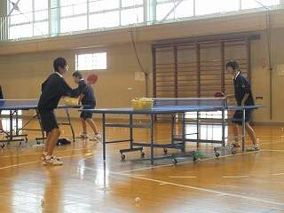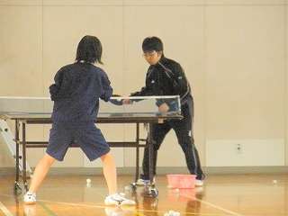 「県中新人大会」まで、1週間となり「団体戦に出場する」女子卓球部の2人が、男子の練習場所である土淵活動センターの練習に参加しました。意欲のある生徒たちです。基本練習をしながら、男子を相手に練習をしました。