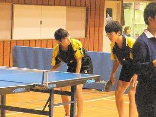 11月6日(土)、水沢市体育館で行われた「胆江地区県大会出場校との練習会」に北陵中学校の男女卓球部が招待され、参加してきました。男子の団体戦の主戦メンバー1人が負傷し、参加できませんでした。来週の「県中新人大会」には、万全の体調でのぞめるようですが。男子団体戦で、上野中(北上地区第1代表)に5−0,水沢南中に3−2、衣川中に5−0でした。遅くなったのですが、水沢高校の女子が会場に来ていましたので無理を言って試合をさせてもらいました。3シングルス1ダブルスで団体戦をしましたが、1−3で敗退しました。やはり女子と言っても「高校の県新人大会ベスト4」の学校ですので、歯が立ちませんでした。午前中は、「県中新人大会の個人戦」出場者でのリーグ戦を行い、たくさん試合をさせてもらいました。北陵中男子卓球部の目標は「県中新人大会ベスト4」です。奥州卓球協会の方々に感謝します。ありがとうございました。