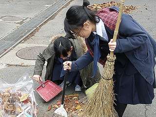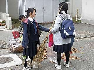 ※11月10日(水)『落ち葉ボランティア』活動をする3年4組の隊員です。