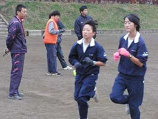 ※11月12日(金)朝のトレーニングの様子です。3年生の淡渕さんが、練習に参加中です。!