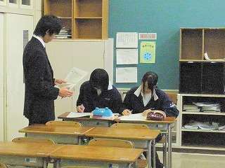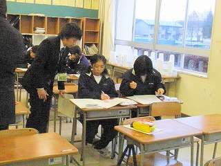 11月に入り、要望していた「大学生による放課後学習支援」活動が始まりました。11月4日(木)には、5人の岩手大学と盛岡大学の学生さんに来ていただき生徒の指導をしていただきました。5人は数学の放課後学習の指導をしていただきました。このスクールトライアルの事業は毎日行われ、たくさんの学生さんに来ていただき、指導をしていただきます。