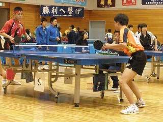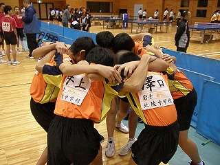 1回戦は陸前高田第一中(気仙地区第2代表)に、第1シングルスをとられるものの3−1で勝利しました。2回戦の相手は衣川中(胆江地区第2代表)にこれまた第1シングルスをとられましたが、3−1で勝利しました。衣川中とは1週間前の「胆江地区卓球大会」で対戦した学校でした。いよいよベスト4をかけての戦いは、猿沢中学校(一関地区第1代表、昨年度全国中学校大会ベスト8)でした。猿沢中学校には、個人戦の1位と2位の生徒がいますのでこの2人には歯が立ちません。ダブルスと残りのシングルス2つをとる以外に勝利できません。しかし、ダブルスも相手と競り合うものの、0−3で惜敗しました。また北陵中のエースの三又選手が、猿沢中の第1シングルスの相手に競りあうものの、0−3で敗退しました。結果1−3で猿沢中学校に勝つことができず、ベスト4の夢はお預けとなりました。残念です。しかし、2年生のおかげで北陵中学校を県中新人大会ベスト8に導いてくれました。北陵中学校卓球部としては、初めてのことです。