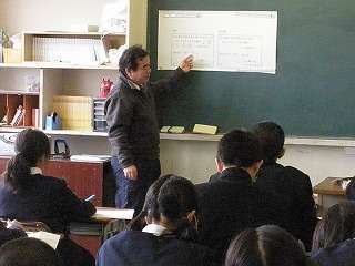 11月12日(金)の2校時、1年7組で数学「比例と反比例」の授業研究会が行われました。指導主事の先生2人を招いて、研究会も行われました。普段の授業の様子を見ることができました。