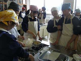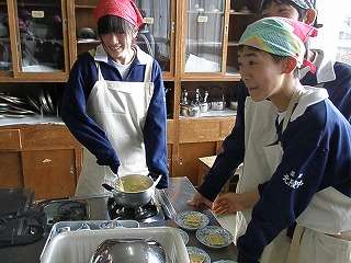 おいしそうな臭いに誘われて☆2年2組が調理実習中、お邪魔しました(その1)