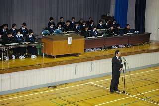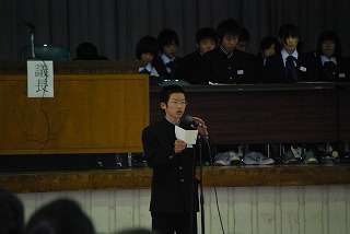 11月16日(火)、平成22年度後期生徒総会が開催されました。主な内容は、前期活動反省と後期活動計画についてでした。開会前、議事進行中の私語、挙手など集会や行事に臨む姿勢では、今後に向けての課題はありましたが、新旧の執行部、局・委員長、学北代表の答弁、各学級からの質問意見などは大変充実していました。