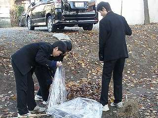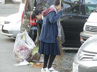 ようやく7組の『落ち葉ボランティア』が出動☆今日も「落ち葉が少ないぞ!」☆3年7組と1組の『落ち葉ボランティア』頑張る(その2)