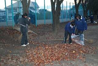 校庭にも落ち葉が多くなりました。今週は部活動の中でも落ち葉拾いをがんばってくれました。ソフトボール部、男女ソフトテニス部、野球部の皆さんが校庭の周囲やテニスコートのフェンス付近にたまった落ち葉をたくさん集めました。おかげさまで校庭はかなり綺麗になりました。皆さんの活動に感謝します。