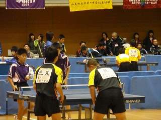 ※写真は、11月19日(金)花巻市総合体育館で行われている「全日本卓球大会カデット大会」で戦う、昆・三又組の様子です。
