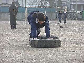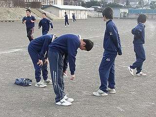※12月9日(木)朝のトレーニングの様子です。3学年の生徒が揃って練習に取り組んでいます。3年生の淡渕さんと小山さんが、朝の練習に毎日参加しています。勉強もありますが、体力を維持しながら、高校生活を目指します。