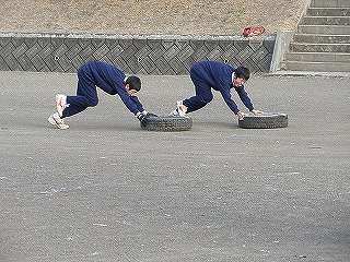 ※12月9日(木)朝のトレーニングの様子です。3学年の生徒が揃って練習に取り組んでいます。3年生の淡渕さんと小山さんが、朝の練習に毎日参加しています。勉強もありますが、体力を維持しながら、高校生活を目指します。