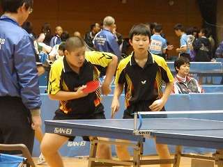 ※写真は、11月19日(金)花巻市総合体育館で行われている「全日本卓球大会カデット大会」で戦う、昆・三又組の様子です。